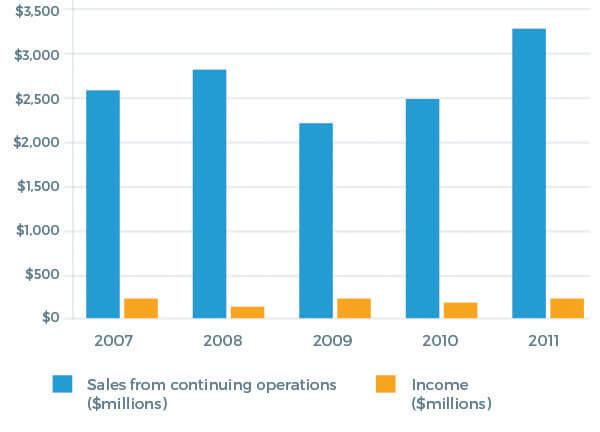 * Sources: Carlisle 2010 annual report, 2011 annual report, and fourth quarter 2011 earnings presentation.
