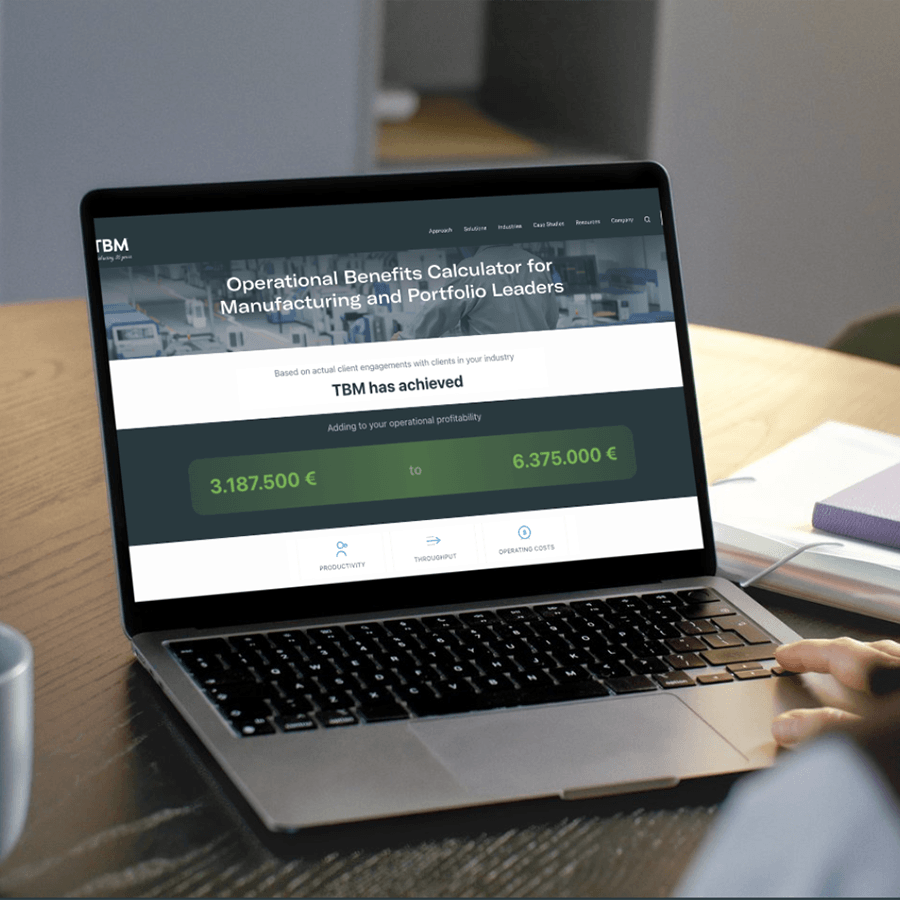 Calculate your operational potential and financial impact in minutes, based on TBM’s 35+ years of experience across client engagements.