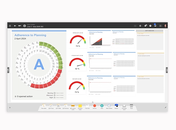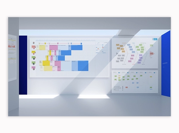 • Replicates the traditional iObeya (“Big Room”) concept in a digital format, enabling teams to collaborate visually and manage work in real time from anywhere